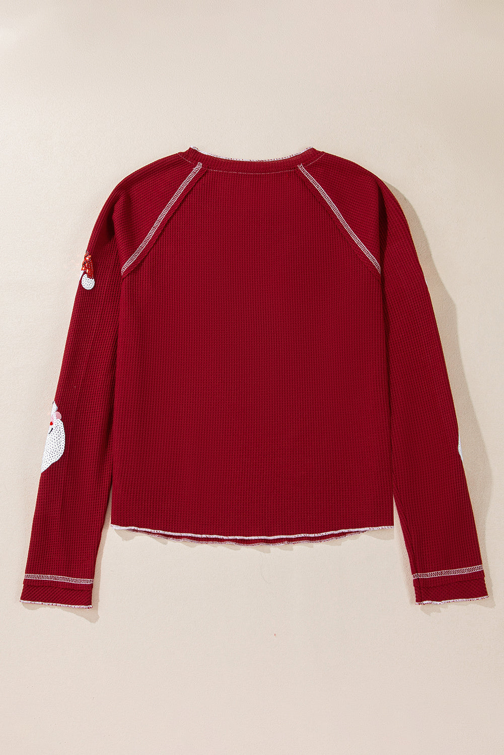 Red Sequin Santa Claus Graphic Patch Application Sweatshirt