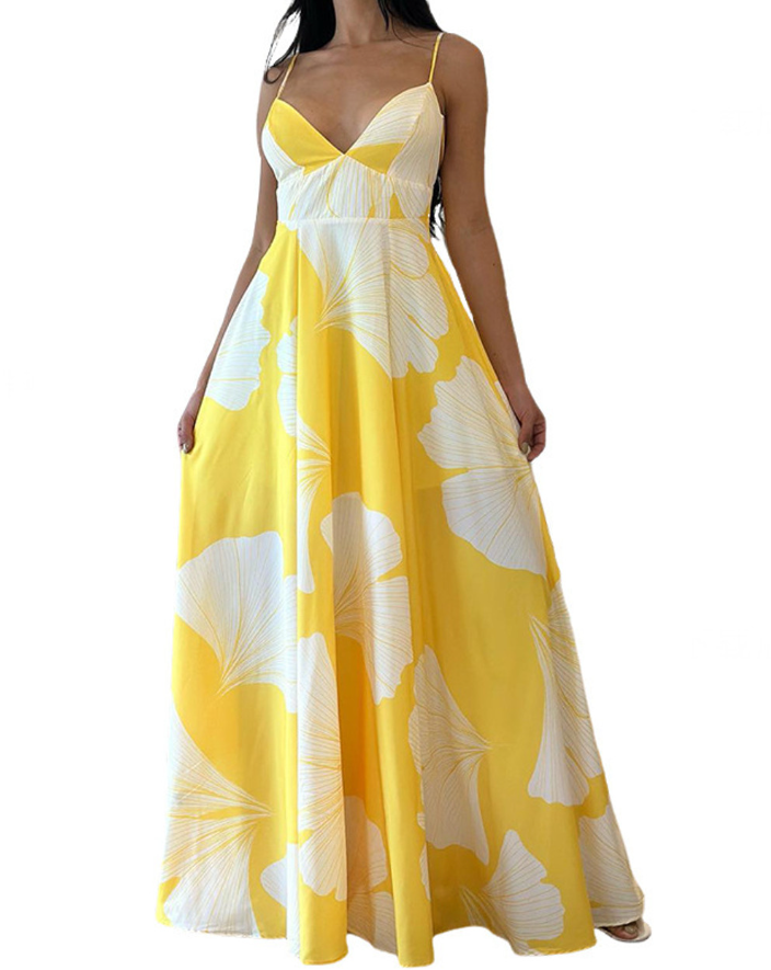 Yellow Floral Print Maxi Dress