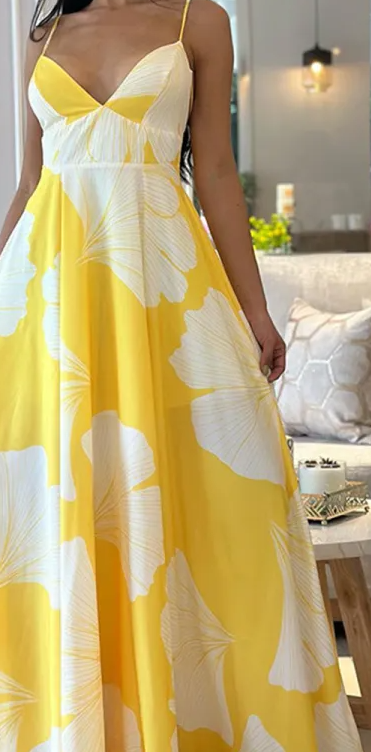 Embrace timeless elegance with our Yellow Floral Print Maxi Dress, designed to brighten your wardrobe with its vibrant yellow base and delicate white floral motifs. The sweetheart neckline and fitted bodice beautifully accentuate your natural curves, creating a feminine and flattering look. The high waistline flows into a full-length, flared skirt that moves gracefully with every step, offering both comfort and style. Perfect for garden parties, weddings, or any special occasion, this dress combines sophistication with a touch of whimsy. Make a statement and elevate your style with this stunning, versatile maxi dress that’s sure to turn heads wherever you go.